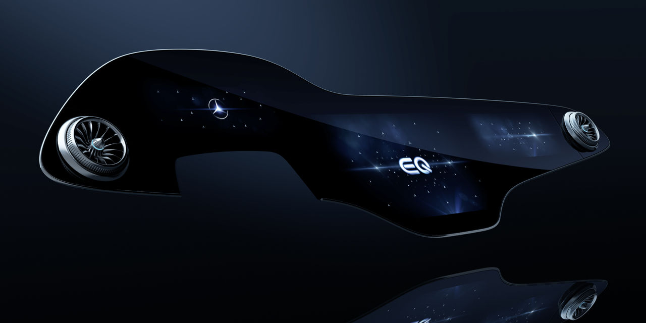 MBUX Hyperscreen – це приклад злиття цифрового і аналогового дизайну: кілька дисплеїв органічно зливаються разом та створюють вражаючу вигнуту смугу екрану. Для об'єднання цифрового і реального світу в цю велику цифрову поверхню інтегровані аналогові дефлектори обдуву.