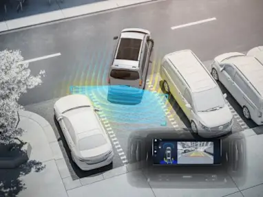 Спрощує паркування та маневрування: за допомогою камери заднього виду ви зможете краще розпізнавати перешкоди, що знаходяться безпосередньо позаду автомобіля. Система активного паркування Active Park Assist також допомагає впевнено маневрувати на паркувальних місцях та залишати їх завдяки динамічним направляючим лініям та акустичним сигналам. (1) |