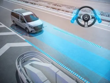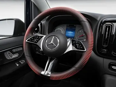 Функція підігріву швидко нагріває зовнішню поверхню шкіряного багатофункціонального керма до температури прибл. 34 °C. Вона активується натисканням кнопки або голосовим управлінням з функцією "Hey Mercedes" і автоматично вимикається через певний час. |